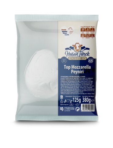 Hasan Türek Çiftliği Mozzarella Peynirimiz, doğal ve hakiki üretim tekniği olan sulu haşlama yöntemiyle üretilmiştir. Çiftliğimizin ineklerinden elde edilen sütten üretilen ürünümüz, hiçbir katkı maddesi ve renklendirici içermemektedir. Makarna, lazanya, pizza ve salatalarda kullanılabilen Hasan Türek Çiftliği Mozarella Peyniri, yumuşak bir peynir olduğu için taze olarak fesleğen ve domates ile birlikte de tüketilebilmektedir. Tatlıları lezzetlendirmek için de kullanılan peynirimiz, fırın yemeklerinde de tercih edilmektedir.